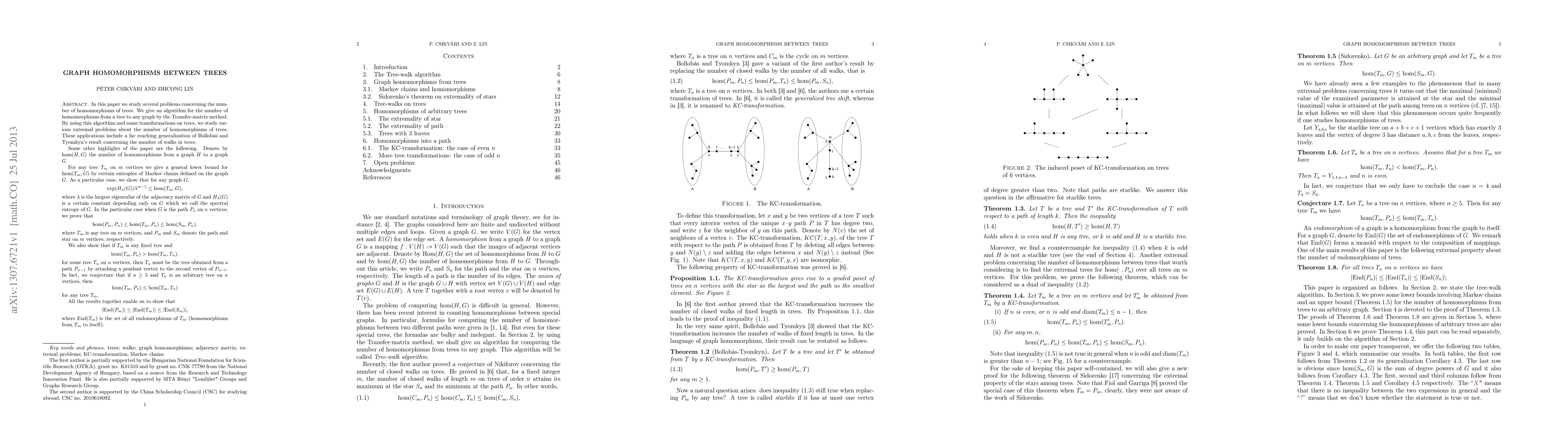 The paper studies homomorphisms between trees, developing an algorithm to count these mappings and deriving bounds for various extremal problems, ultimately leading to a comparison of the number of endomorphisms in paths, trees, and stars.
