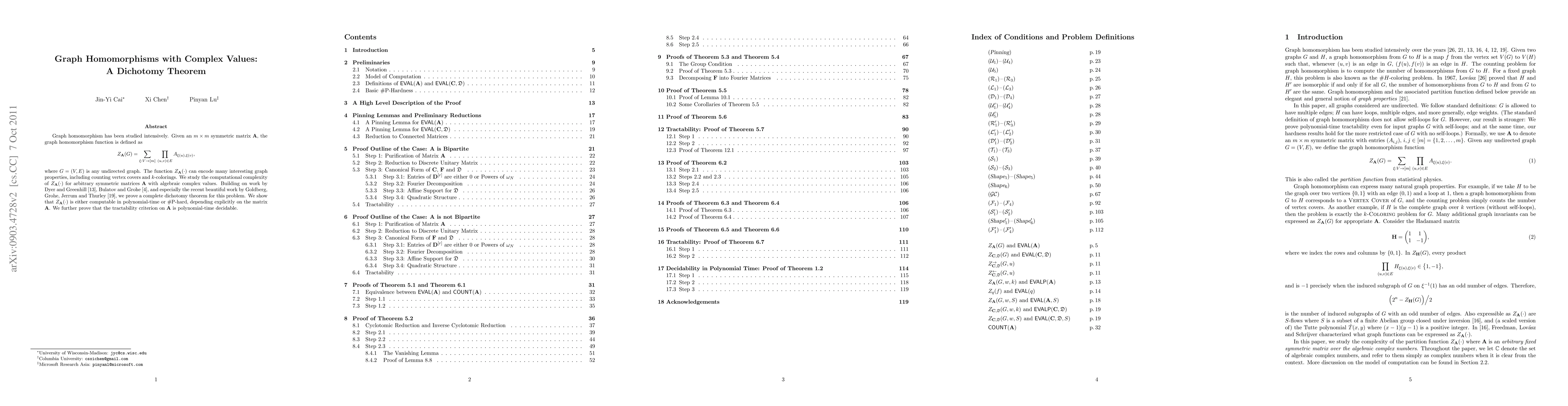 This paper proves a complete dichotomy theorem for the computational complexity of graph homomorphisms with complex values, showing that the problem is either polynomial-time solvable or #P-hard, depending on the properties of the input matrix A, and establishes that determining this tractability is decidable in polynomial time.