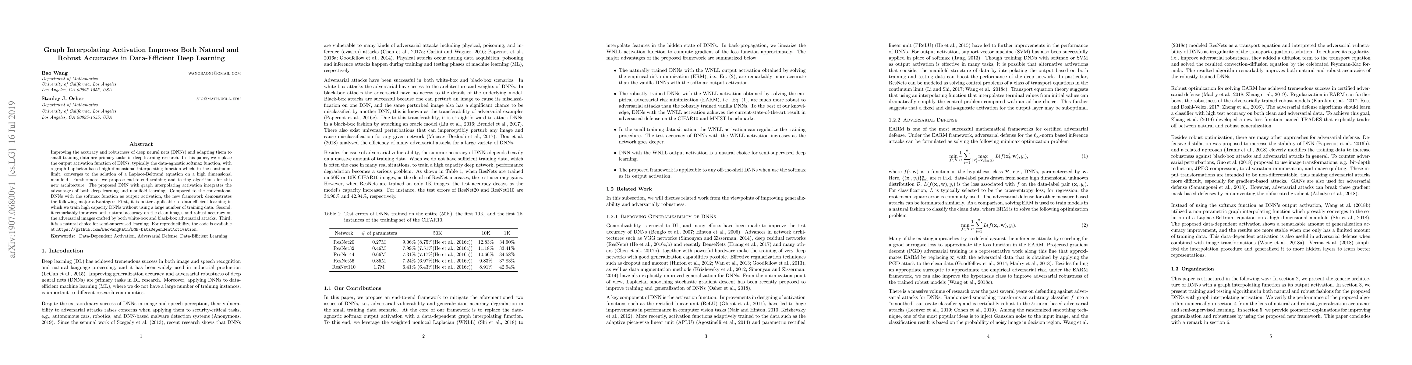This paper proposes a graph interpolating activation function for deep neural networks, replacing the softmax function, to enhance both natural and robust accuracies in data-efficient learning. The new framework shows improved performance in small data scenarios and better resistance to adversarial attacks.