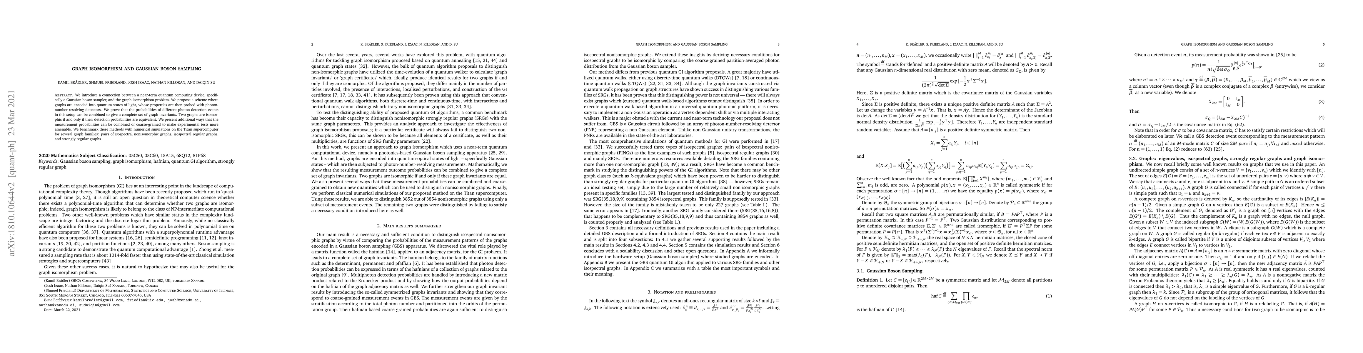 This paper establishes a link between Gaussian boson sampling in quantum computing and the graph isomorphism problem, proposing a method to encode graphs into quantum states of light. It demonstrates that the detection probabilities from these states can serve as graph invariants, enabling the determination of graph isomorphism through quantum measurements.