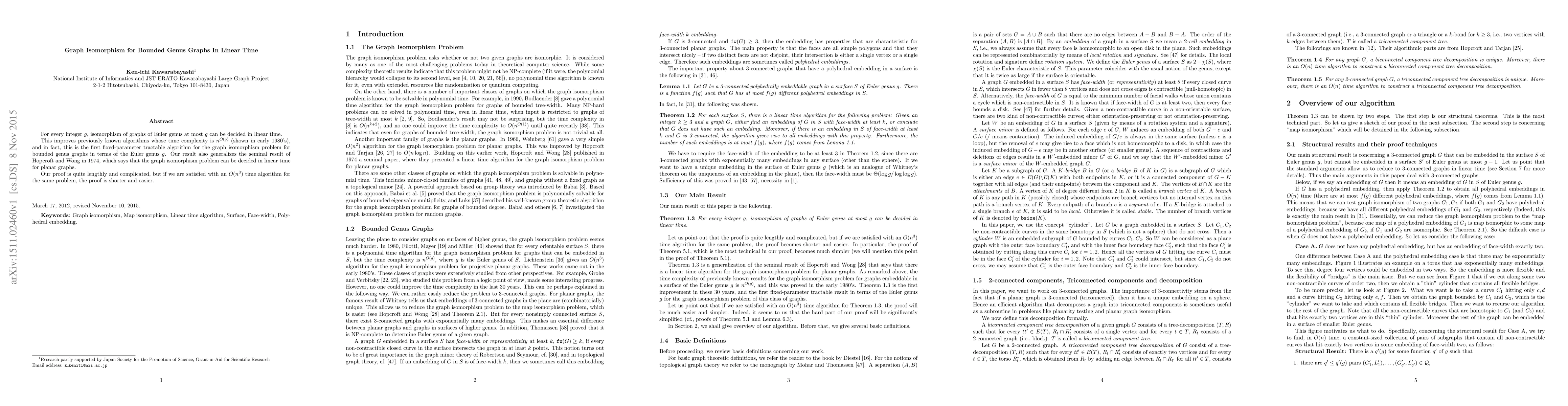 This paper presents a linear time algorithm for determining isomorphism in graphs of bounded Euler genus, significantly improving upon previous $n^{O(g)}$ time complexity algorithms. This is the first fixed-parameter tractable solution for the graph isomorphism problem concerning bounded genus graphs.