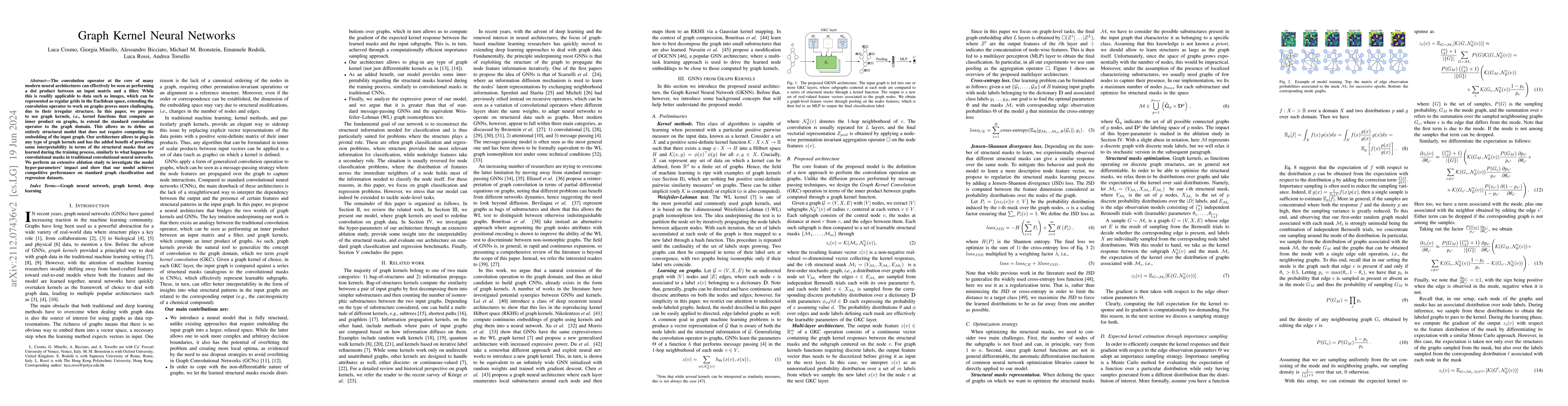This paper proposes graph kernel neural networks that extend the convolution operator to graphs using graph kernels for inner product computation. The model offers structural interpretability and achieves competitive performance on graph classification and regression tasks.