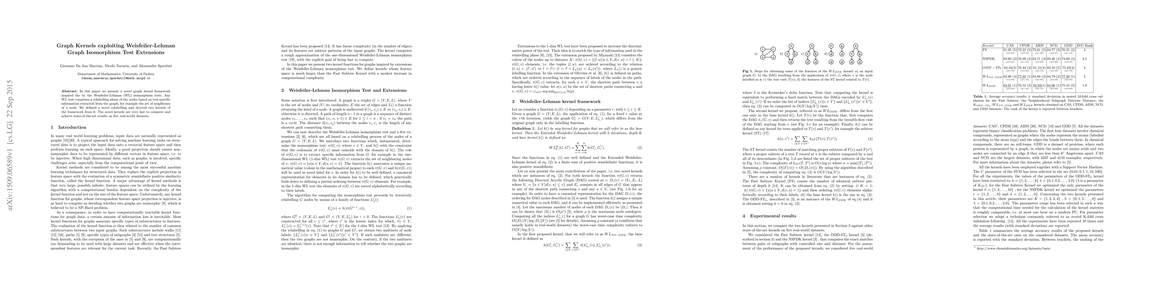 This paper introduces a fast graph kernel framework leveraging the Weisfeiler-Lehman (WL) isomorphism tests, defining a novel relabelling phase and deriving two efficient kernels that achieve top performance on multiple datasets.