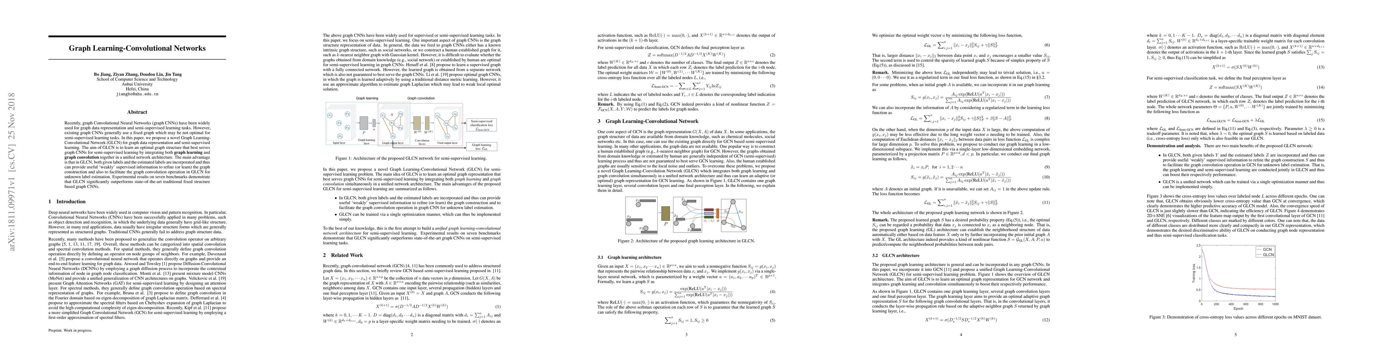 GraphLearning-ConvolutionalNetwork (GLCN) integrates graph learning operation and traditional graph convolution architecture to learn optimal graph structure for semi-supervised learning.