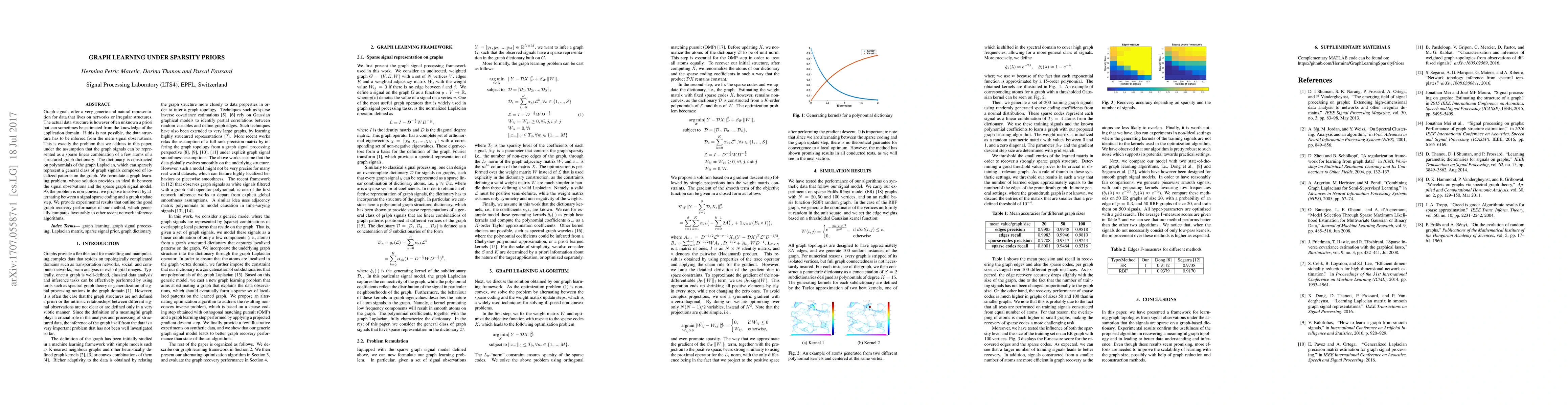 This paper proposes a method for inferring the structure of networks from graph signals, using a sparse linear combination of a dictionary of polynomials derived from the graph Laplacian. The method recovers network structures with good performance, outperforming other recent algorithms.