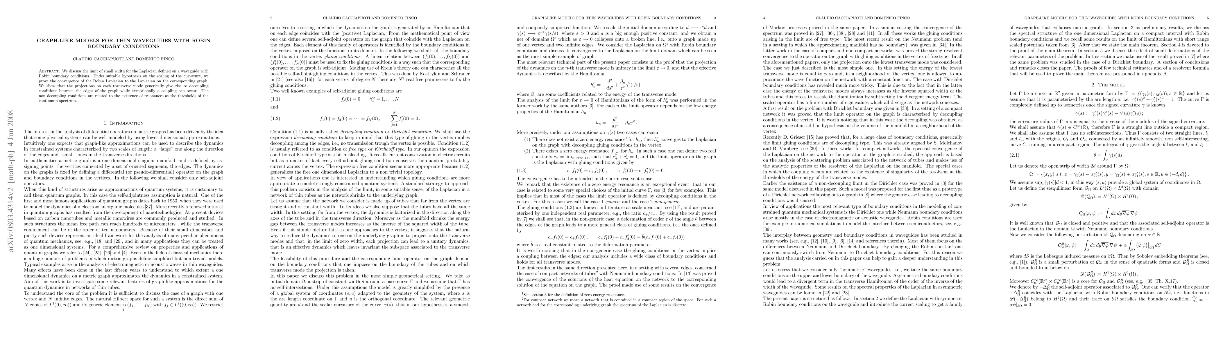 This paper investigates the behavior of the Laplacian on thin waveguides with Robin boundary conditions as the width approaches zero. It proves the convergence of the Robin Laplacian to the Laplacian on the corresponding graph, with decoupling conditions generally arising between the graph's edges, except for specific resonances at continuum spectrum thresholds.