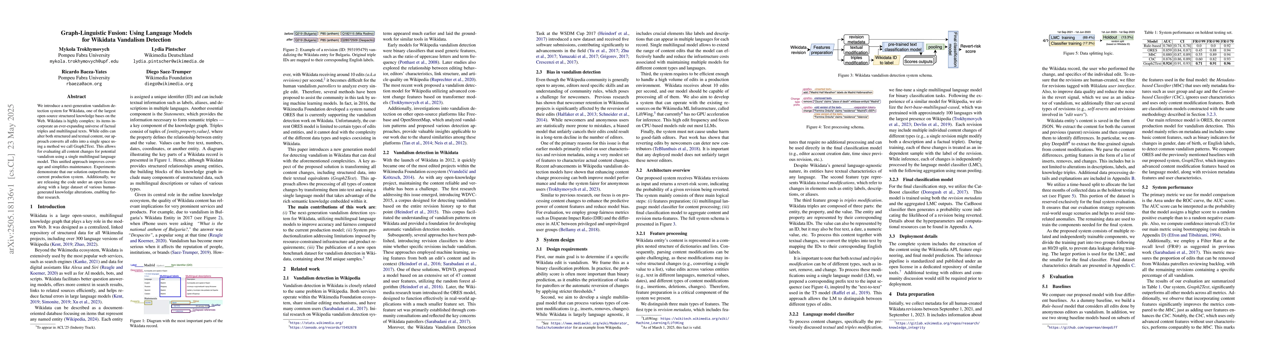 This research introduces a new vandalism detection system for Wikidata that uses language models to evaluate changes in multilingual texts, outperforming the current production system.