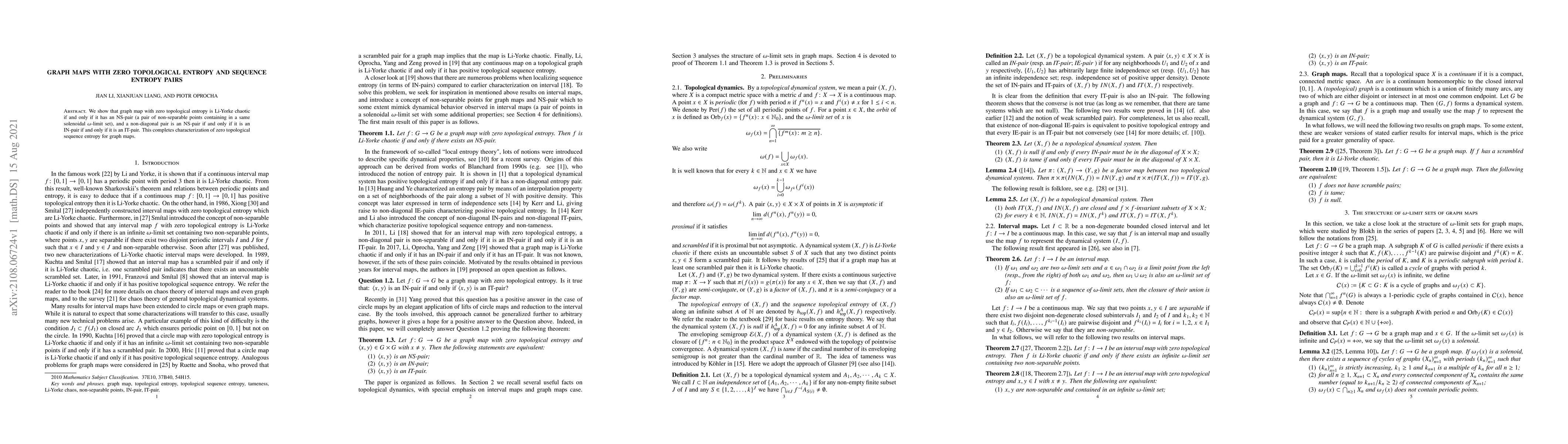 A graph map with zero topological entropy is Li-Yorke chaotic if it has an NS-pair, a non-diagonal pair that's also an IN-pair and IT-pair, characterizing zero topological sequence entropy for graph maps.