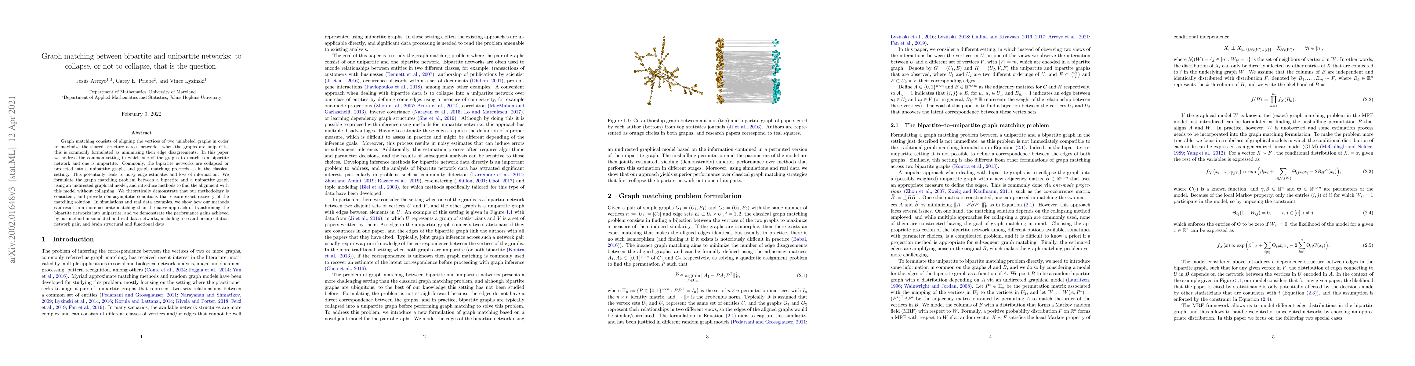 This paper proposes a novel method for graph matching between bipartite and unipartite networks, avoiding the loss of information that occurs when collapsing bipartite graphs into unipartite ones. The authors introduce an undirected graphical model to directly align the networks, demonstrating improved accuracy through simulations and real-world data examples.