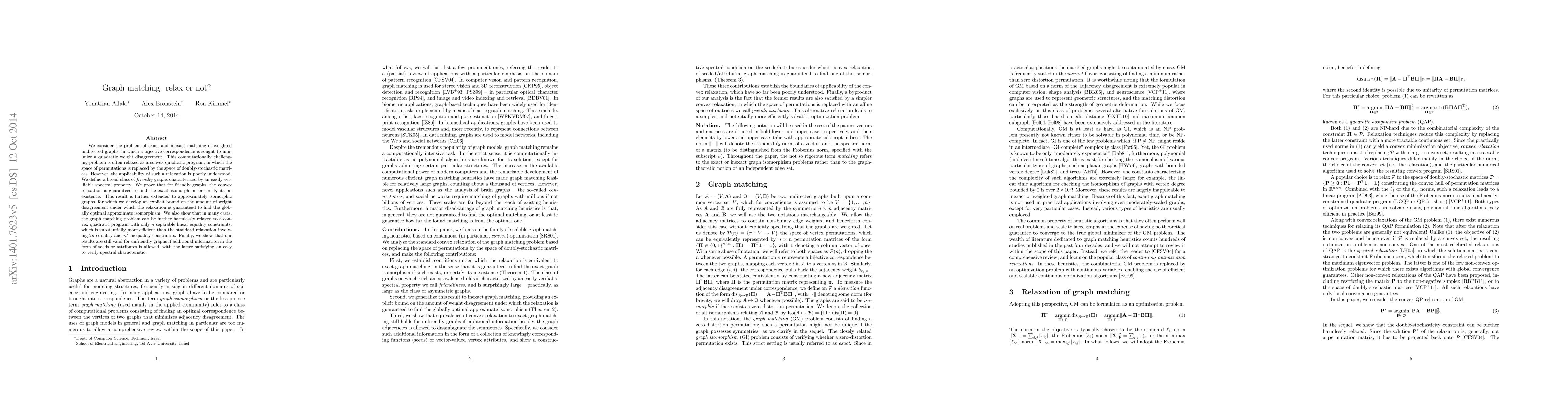 This research paper introduces 'friendly graphs', a class characterized by a spectral property, for which the common graph matching relaxation to a convex quadratic program guarantees finding the exact or proving non-existence of isomorphism. The method extends to approximately isomorphic graphs with a weight disagreement bound and further relaxation to a more efficient convex program with linear constraints. The results also apply to unfriendly graphs with additional information like seeds or attributes satisfying a spectral characteristic.