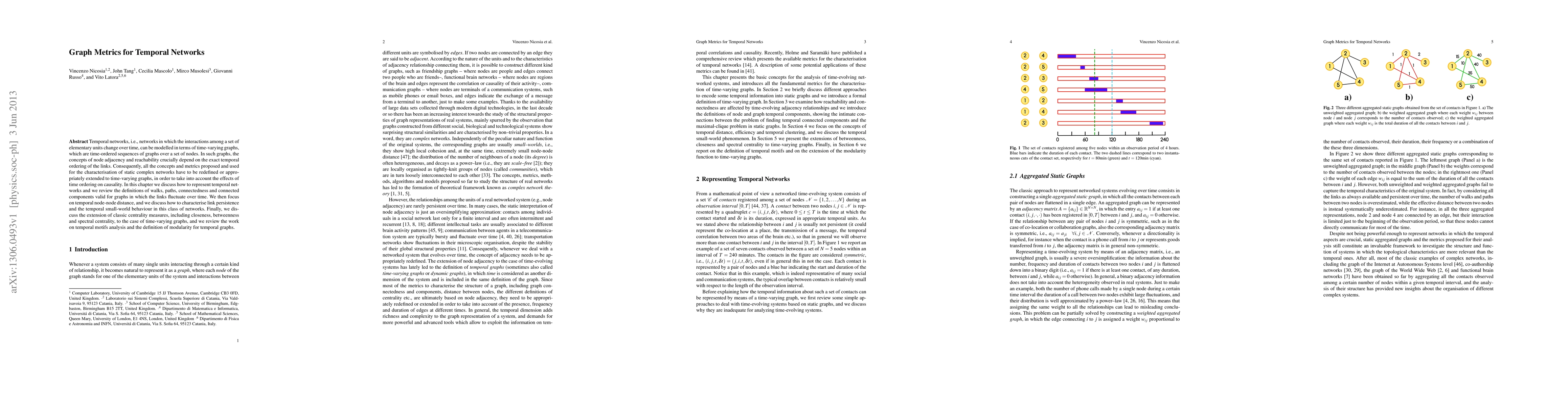 This paper explores the representation and analysis of temporal networks through time-varying graphs, redefining traditional network metrics like walks, paths, and centrality measures to account for temporal link dynamics, and introduces concepts like temporal node-node distance and link persistence.