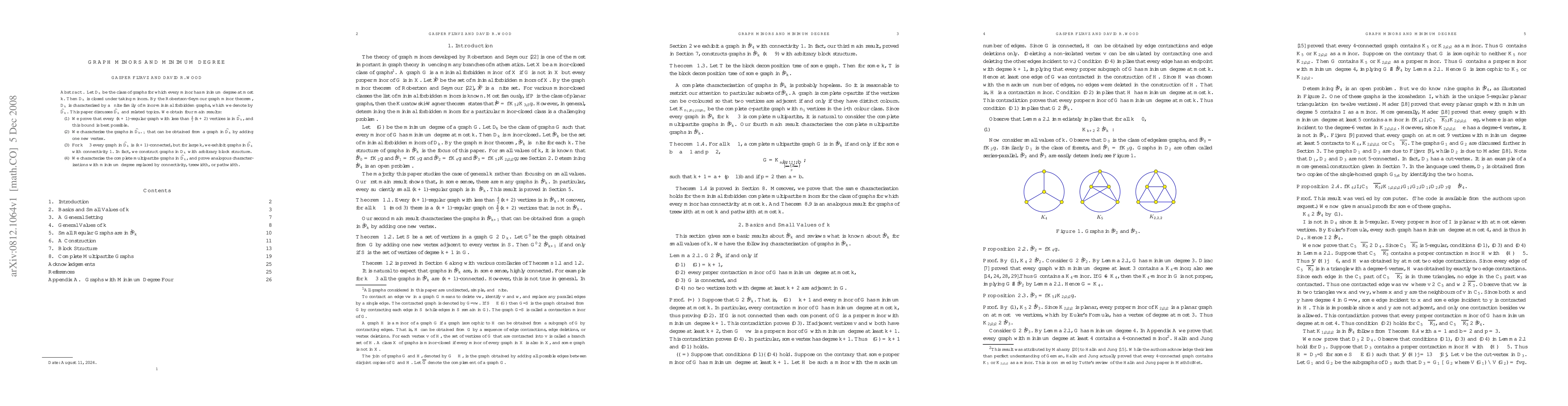 The paper studies the class of graphs with minimum degree at most k, exploring properties such as connectivity and block structure.