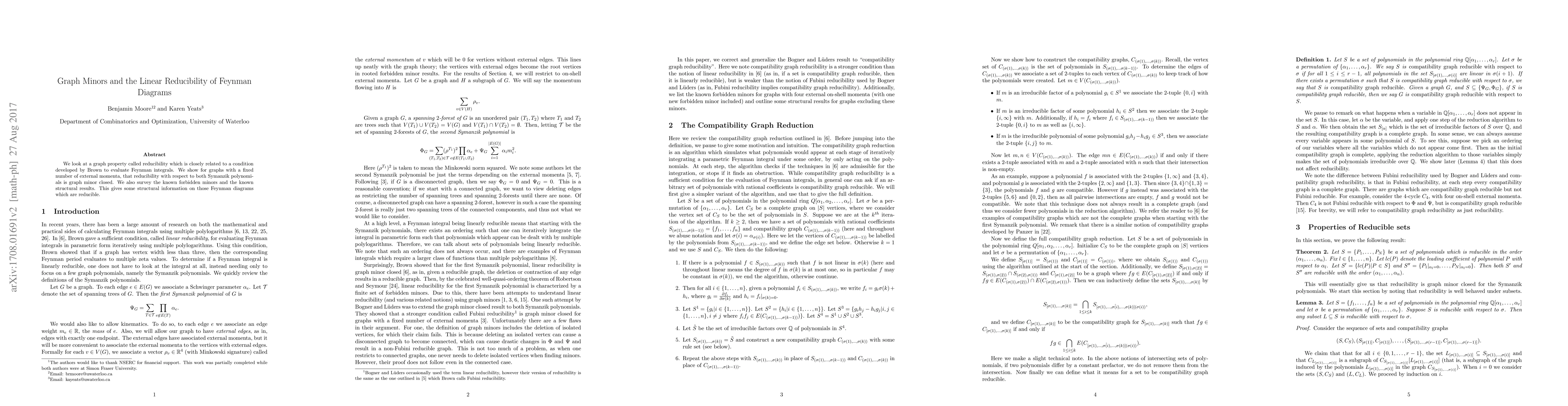 This paper establishes that reducibility of Feynman diagrams with a fixed number of external momenta is graph minor closed. It also surveys known forbidden minors and structural results, providing insights into reducible Feynman diagrams.