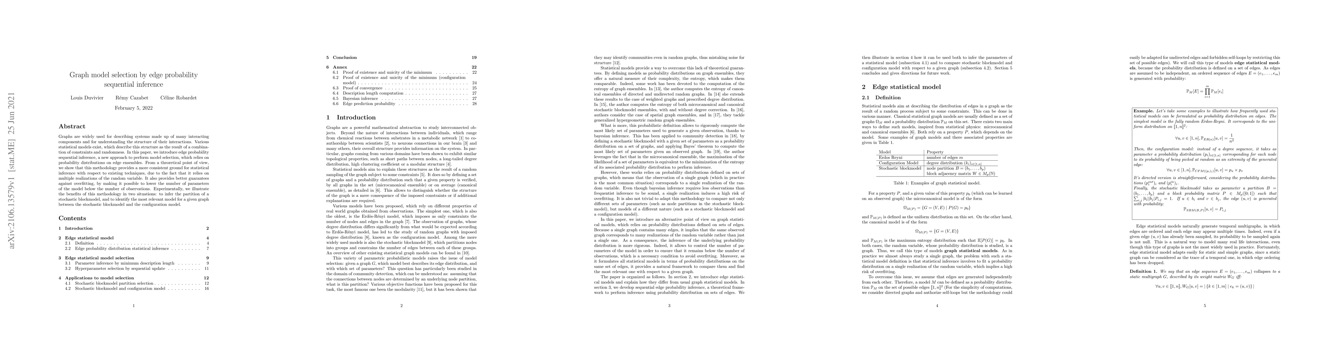 A new approach to model selection for graphs is proposed using edge probability sequential inference, offering a more consistent method with better guarantees against overfitting.