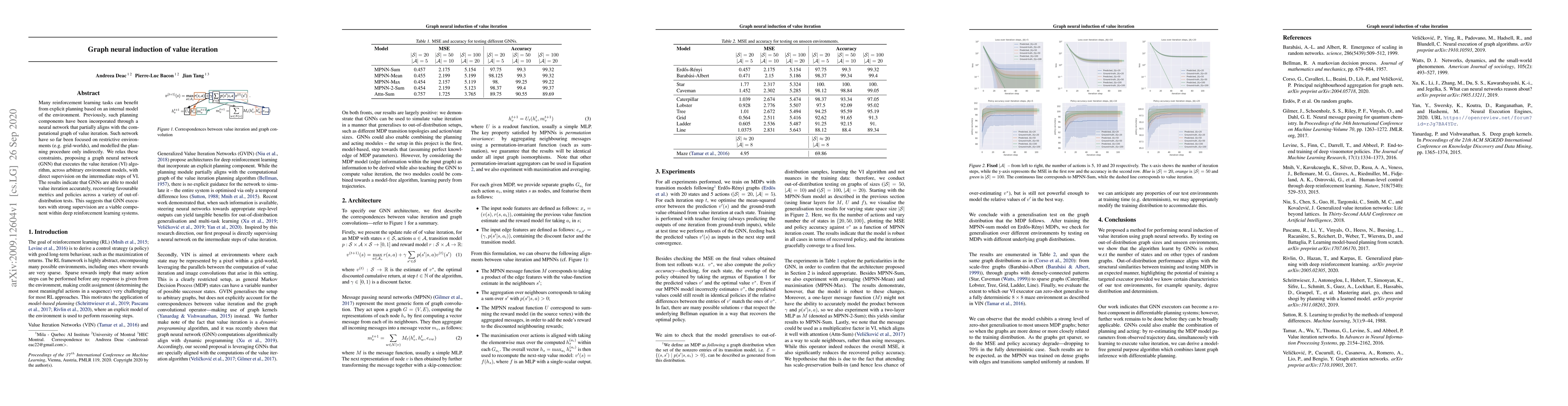 A graph neural network can accurately model value iteration, a planning component used in reinforcement learning, across various environments with strong supervision. This suggests GNNs as a viable part of deep reinforcement learning systems.