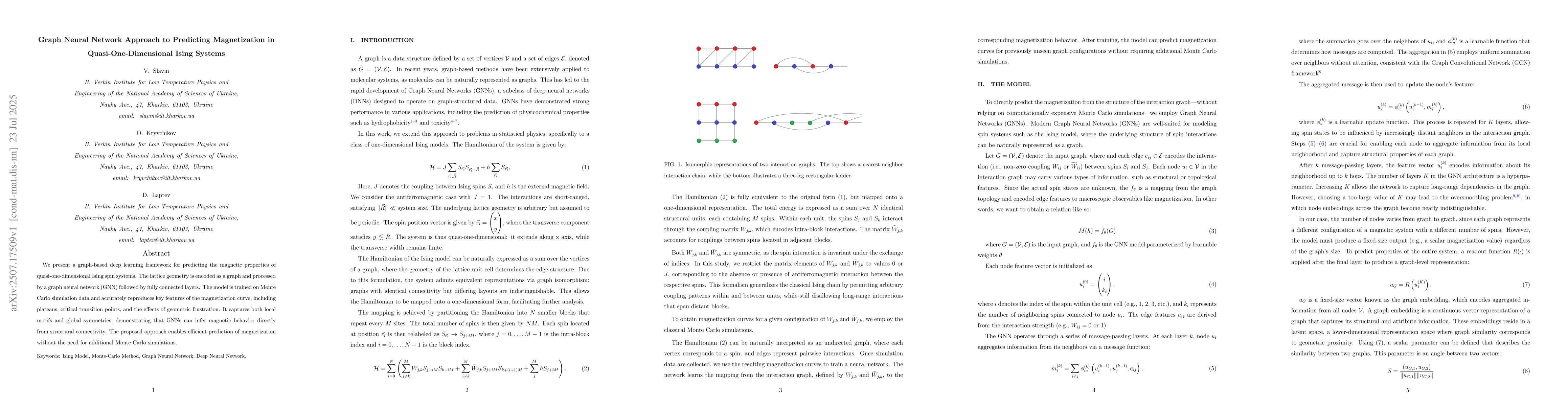 The research presents a graph neural network (GNN) framework for predicting magnetization in quasi-one-dimensional Ising spin systems. The lattice geometry is encoded as a graph, processed by a GNN followed by fully connected layers, trained on Monte Carlo simulation data.