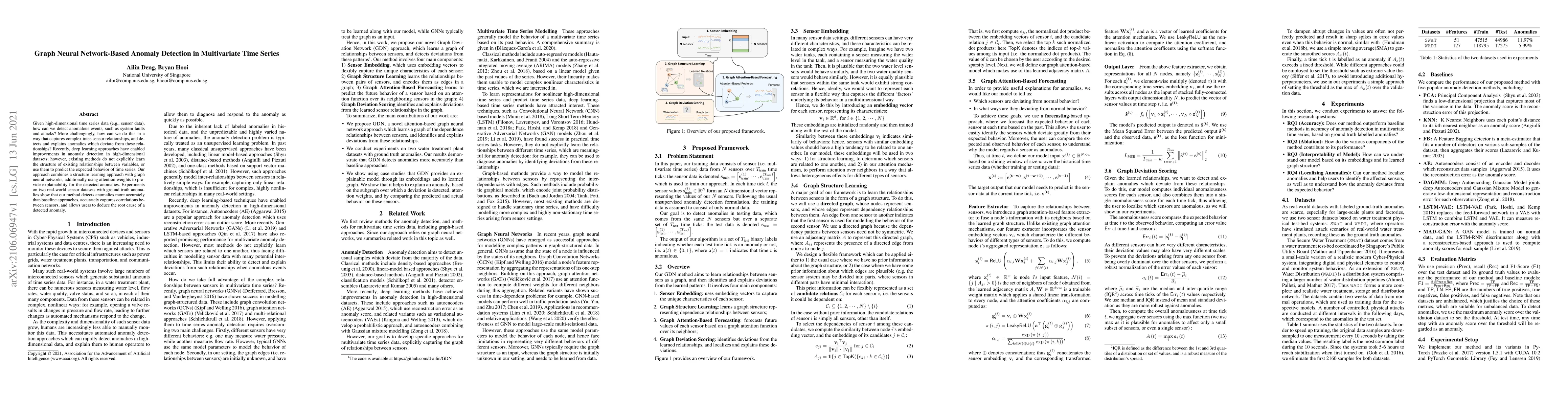 This research paper proposes a graph neural network-based approach to detecting anomalies in multivariate time series data, capturing complex inter-sensor relationships and providing explainability for detected anomalies.
