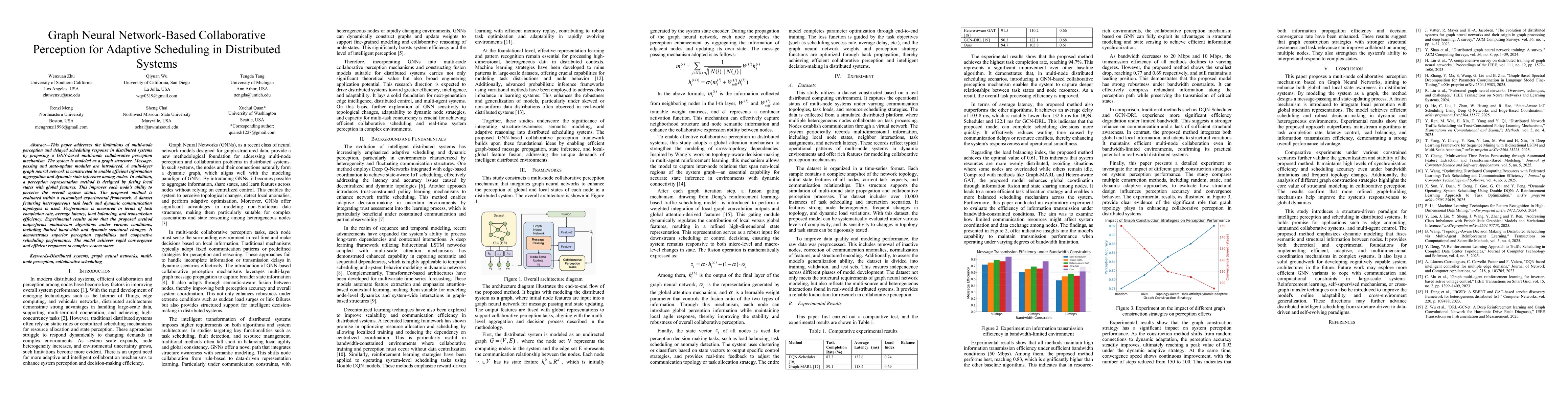 A graph neural network-based system improves perception and scheduling in distributed systems by efficiently aggregating information among nodes, achieving superior performance with rapid convergence and efficient responses.