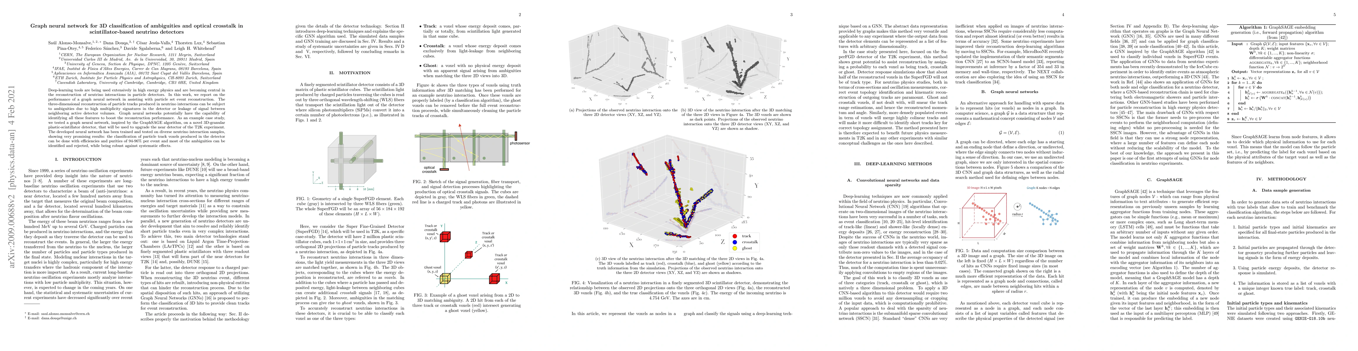 A graph neural network was developed to improve neutrino detector reconstruction, achieving 94-96% efficiency and purity in classifying particle tracks. It successfully identified ambiguities and rejected most systematics, showing promising results for future detector upgrades.