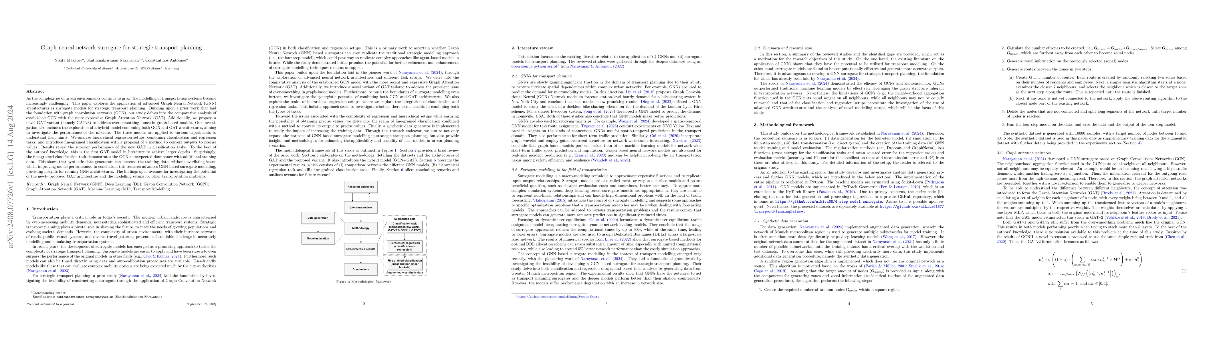 As the complexities of urban environments continue to grow, the modelling of transportation systems become increasingly challenging. This paper explores the application of advanced Graph Neural Network (GNN) architectures as surrogate models for strategic transport planning. Building upon a prior work that laid the foundation with graph convolution networks (GCN), our study delves into the comparative analysis of established GCN with the more expressive Graph Attention Network (GAT). Additionally, we propose a novel GAT variant (namely GATv3) to address over-smoothing issues in graph-based models. Our investigation also includes the exploration of a hybrid model combining both GCN and GAT architectures, aiming to investigate the performance of the mixture. The three models are applied to various experiments to understand their limits. We analyse hierarchical regression setups, combining classification and regression tasks, and introduce fine-grained classification with a proposal of a method to convert outputs to precise values. Results reveal the superior performance of the new GAT in classification tasks. To the best of the authors' knowledge, this is the first GAT model in literature to achieve larger depths. Surprisingly, the fine-grained classification task demonstrates the GCN's unexpected dominance with additional training data. This shows that synthetic data generators can increase the training data, without overfitting issues whilst improving model performance. In conclusion, this research advances GNN based surrogate modelling, providing insights for refining GNN architectures. The findings open avenues for investigating the potential of the newly proposed GAT architecture and the modelling setups for other transportation problems.