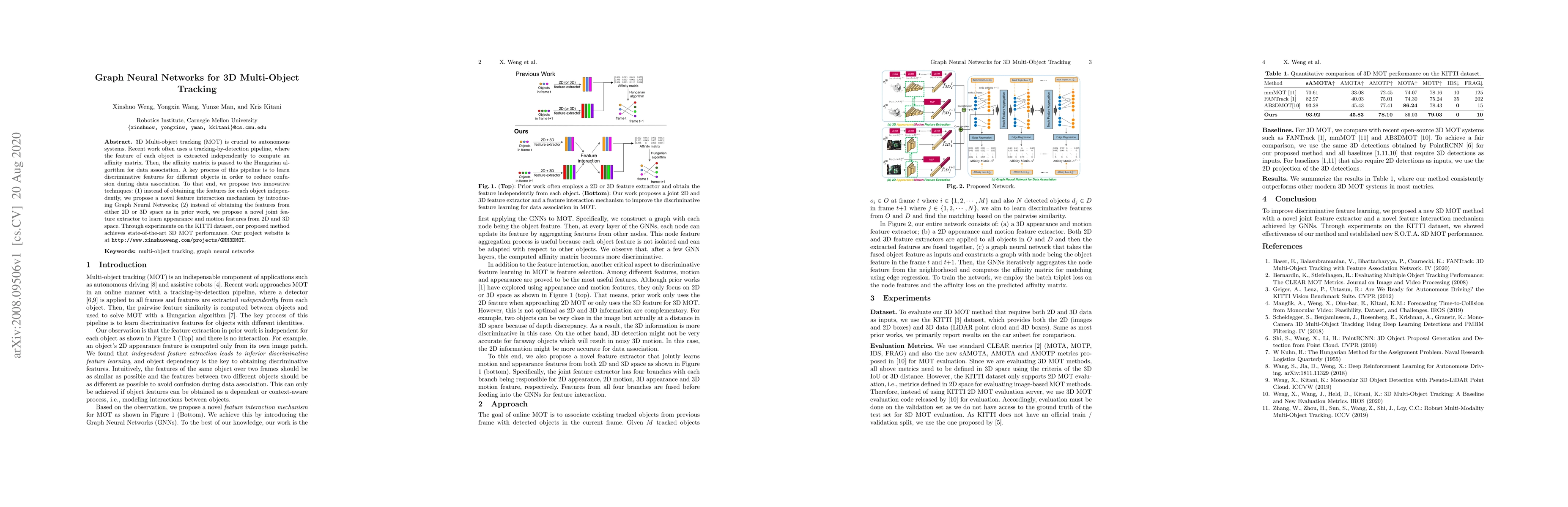 This paper proposes a novel Graph Neural Network (GNN) based approach for 3D multi-object tracking, utilizing a joint feature extractor to learn discriminative features from both 2D and 3D spaces, significantly improving tracking performance on the KITTI dataset.