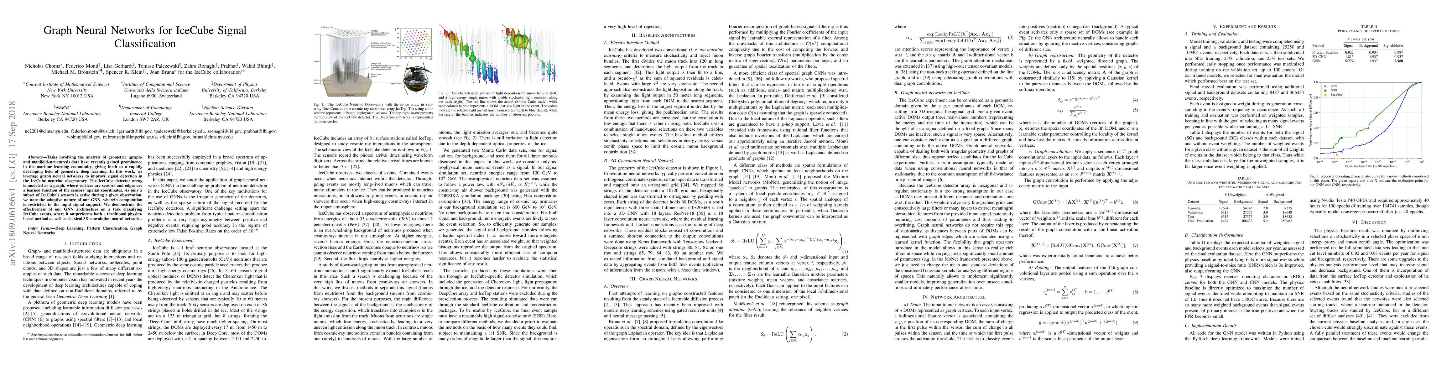 This paper utilizes graph neural networks to enhance signal detection in the IceCube neutrino observatory, modeling the detector array as a graph. The proposed GNN architecture outperforms traditional methods and classical 3D convolution neural networks in classifying IceCube events.