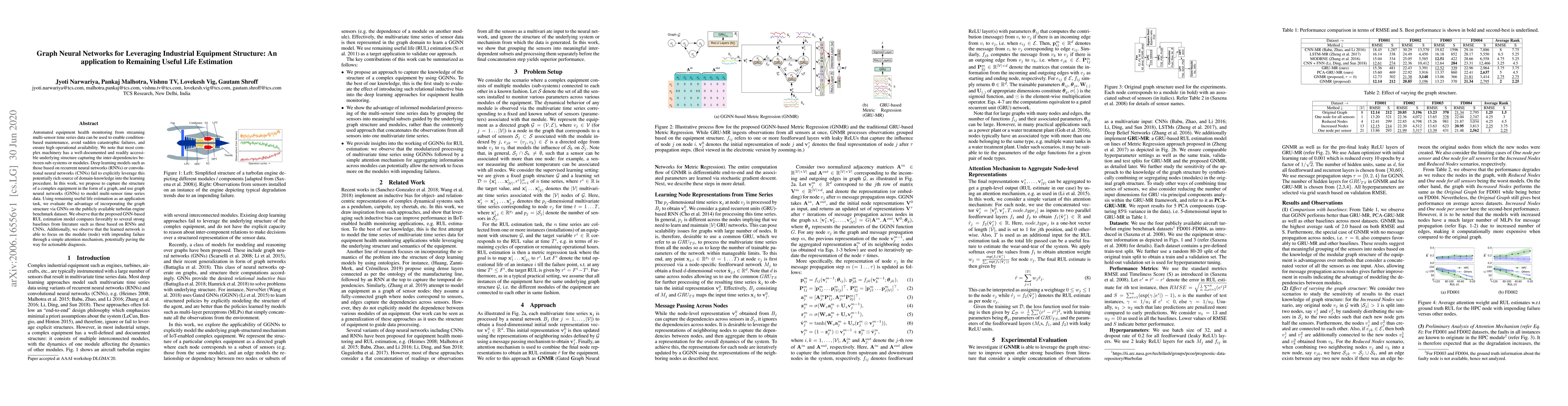 This paper proposes using graph neural networks (GNNs) to leverage the structural inter-dependencies of industrial equipment for remaining useful life (RUL) estimation, outperforming traditional RNN and CNN models. The GNN approach captures equipment structure and identifies failing modules, offering potential for actionable diagnosis.