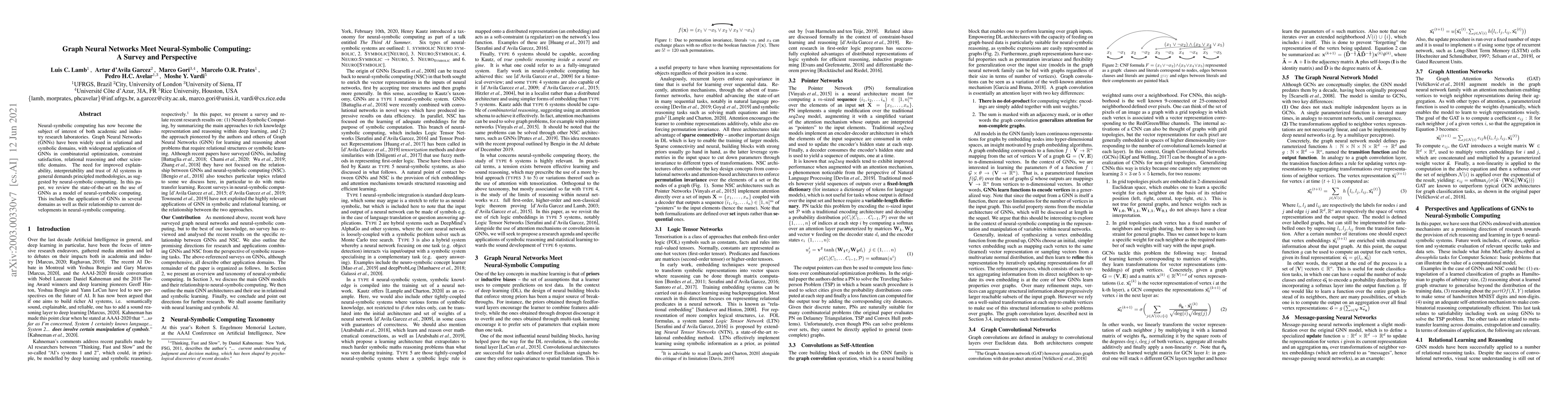 Neural-symbolic computing has now become the subject of interest of both academic and industry research laboratories. Graph Neural Networks (GNN) have been widely used in relational and symbolic domains, with widespread application of GNNs in combinatorial optimization, constraint satisfaction, relational reasoning and other scientific domains. The need for improved explainability, interpretability and trust of AI systems in general demands principled methodologies, as suggested by neural-symbolic computing. In this paper, we review the state-of-the-art on the use of GNNs as a model of neural-symbolic computing. This includes the application of GNNs in several domains as well as its relationship to current developments in neural-symbolic computing.