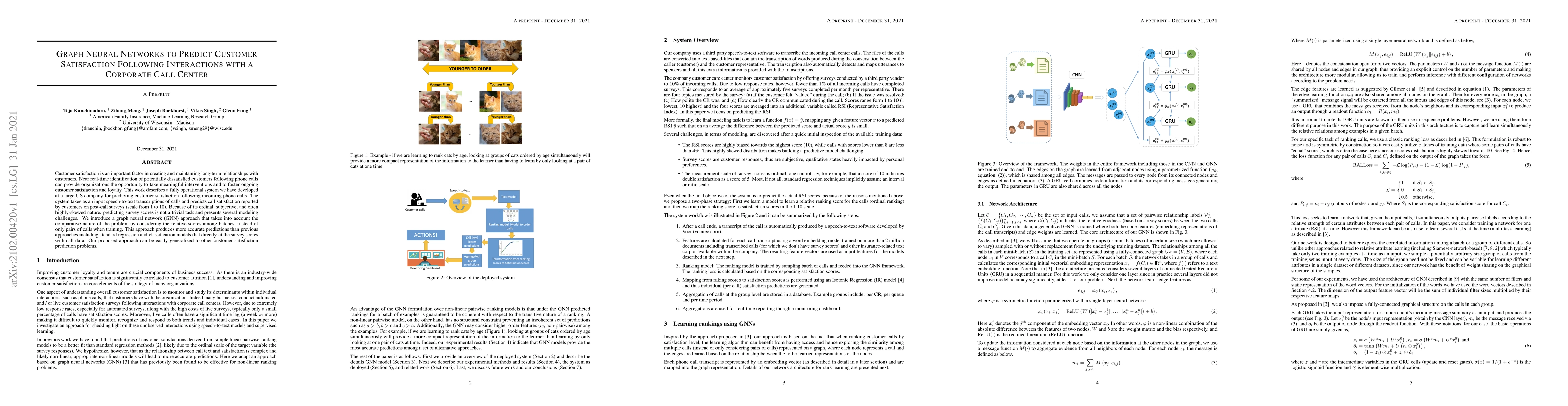This paper presents a graph neural network (GNN) system for predicting customer satisfaction following call center interactions, using speech-to-text transcriptions. The GNN approach considers relative scores among batches, achieving more accurate predictions than traditional regression and classification models.