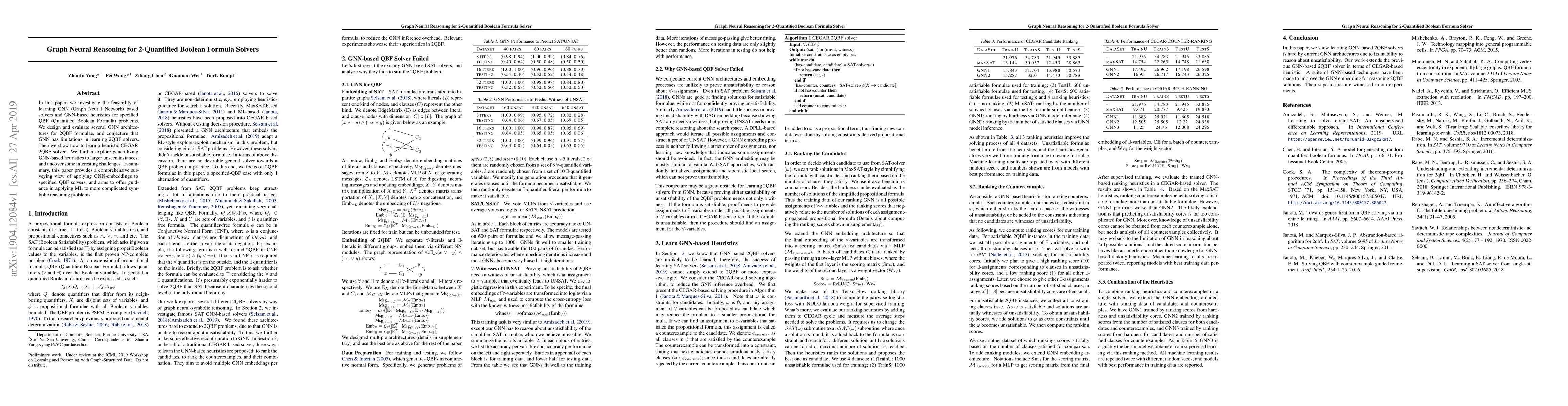 This paper explores the application of Graph Neural Networks (GNN) for solving 2-Quantified Boolean Formula (2QBF) problems, evaluating various GNN architectures and identifying their limitations. It also demonstrates the development of a heuristic CEGAR 2QBF solver and discusses challenges in generalizing GNN-based heuristics to larger instances.