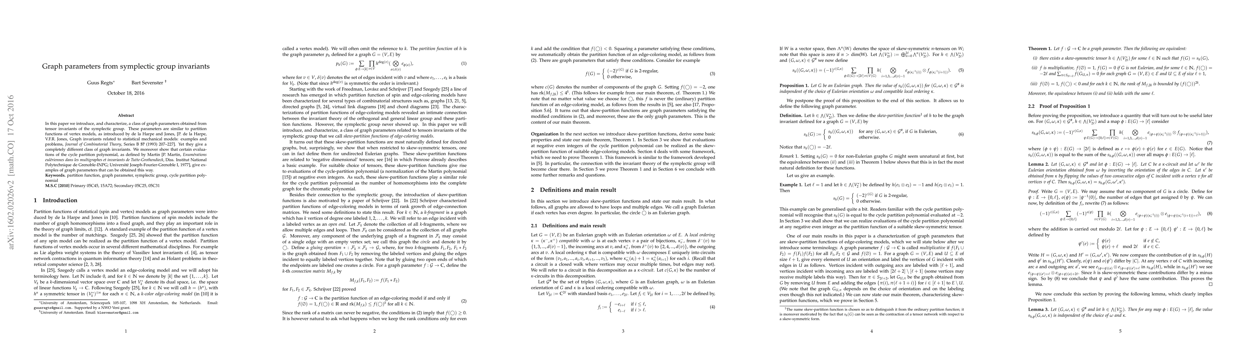 In this paper we introduce, and characterize, a class of graph parameters obtained from tensor invariants of the symplectic group. These parameters are similar to partition functions of vertex models, as introduced by de la Harpe and Jones, [P. de la Harpe, V.F.R. Jones, Graph invariants related to statistical mechanical models: examples and problems, Journal of Combinatorial Theory, Series B 57 (1993) 207-227]. Yet they give a completely different class of graph invariants. We moreover show that certain evaluations of the cycle partition polynomial, as defined by Martin [P. Martin, Enum\'erations eul\'eriennes dans les multigraphes et invariants de Tutte-Grothendieck, Diss. Institut National Polytechnique de Grenoble-INPG; Universit\'e Joseph-Fourier-Grenoble I, 1977], give examples of graph parameters that can be obtained this way.