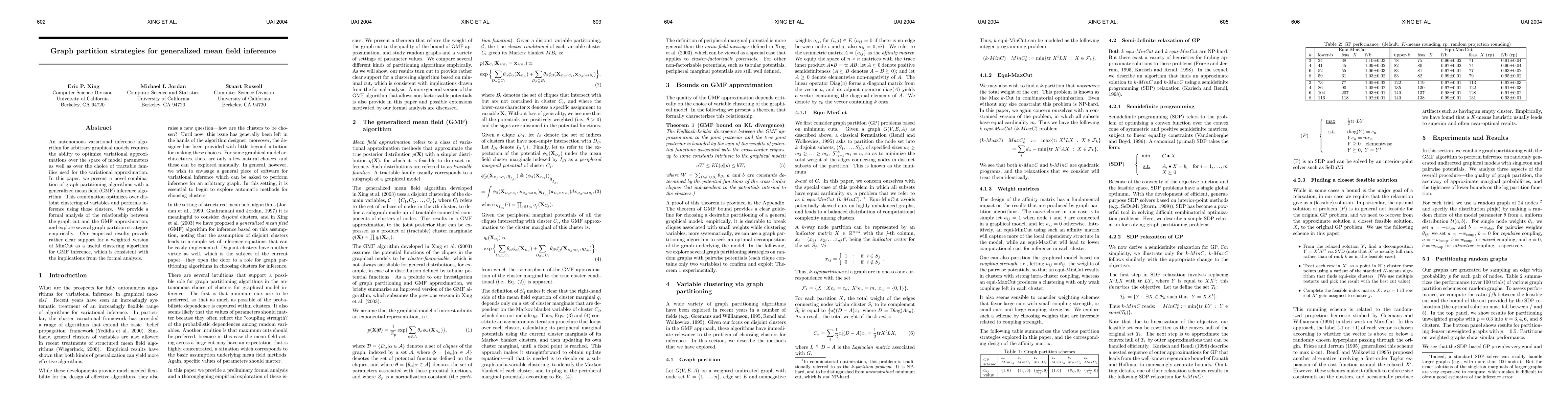 This paper introduces a novel graph partitioning approach combined with generalized mean field inference to optimize variational approximations for arbitrary graphical models. Empirical results support a weighted MinCut strategy for effective clustering in GMF inference, consistent with formal analysis.