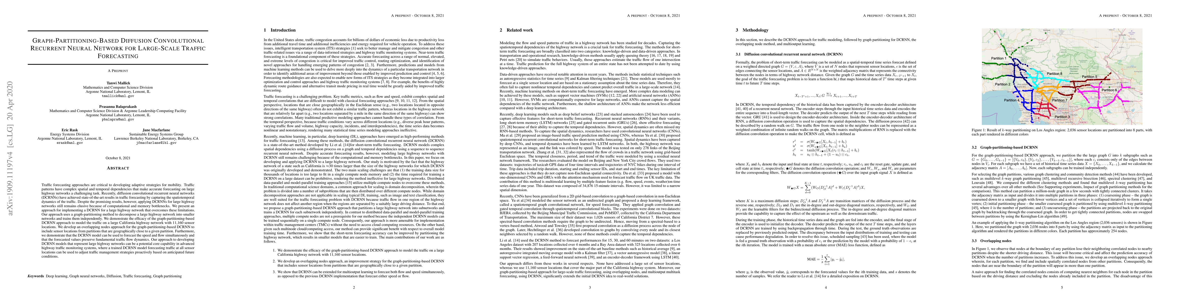 This paper introduces a graph-partitioning-based diffusion convolutional recurrent neural network (DCRNN) to efficiently forecast traffic on large highway networks by decomposing them into smaller manageable parts. The proposed overlapping nodes technique enhances model accuracy and demonstrates the model's effectiveness on a California highway network with 11,160 sensors.
