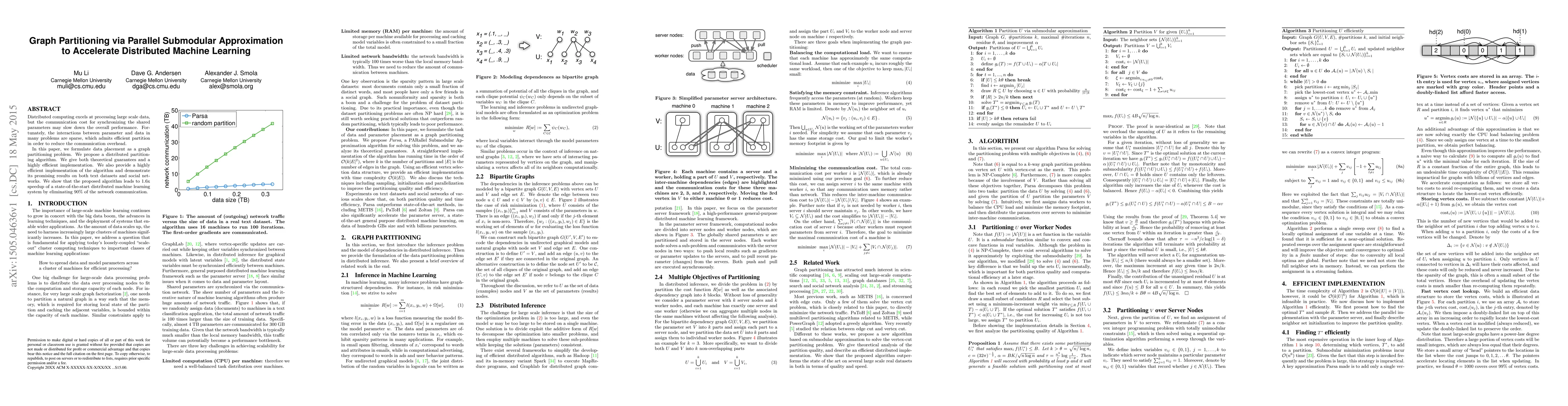 This paper proposes a distributed partitioning algorithm for graph partitioning to reduce communication overhead in large-scale distributed machine learning. The algorithm achieves a 1.6x speedup and eliminates 90% of network communication by efficiently partitioning data based on sparse parameter-data interactions.