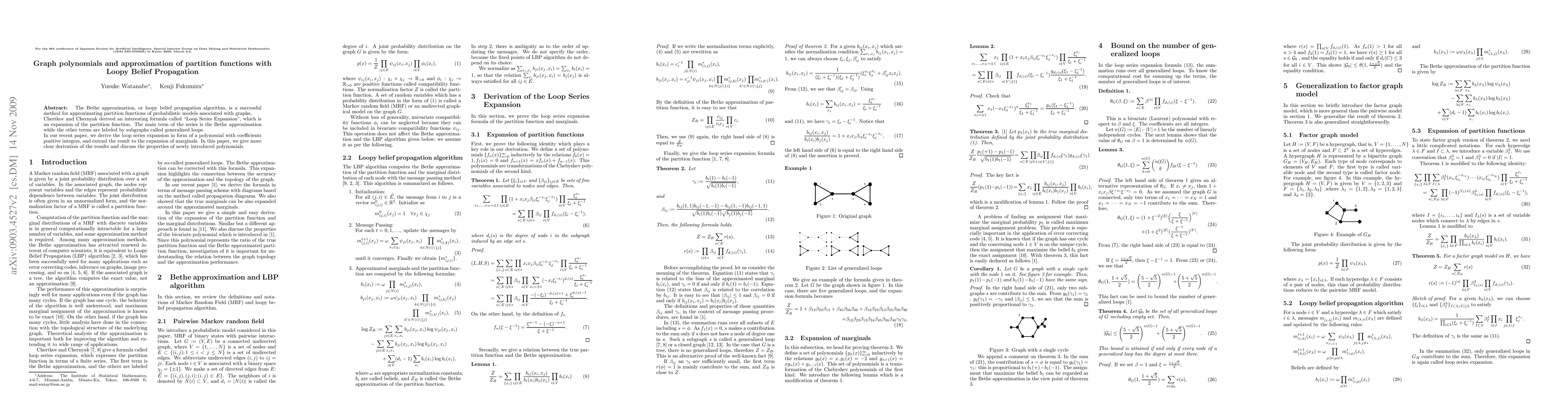The Bethe approximation, or loopy belief propagation algorithm is a successful method for approximating partition functions of probabilistic models associated with a graph. Chertkov and Chernyak derived an interesting formula called Loop Series Expansion, which is an expansion of the partition function. The main term of the series is the Bethe approximation while other terms are labeled by subgraphs called generalized loops. In our recent paper, we derive the loop series expansion in form of a polynomial with coefficients positive integers, and extend the result to the expansion of marginals. In this paper, we give more clear derivation for the results and discuss the properties of the polynomial which is introduced in the paper.
