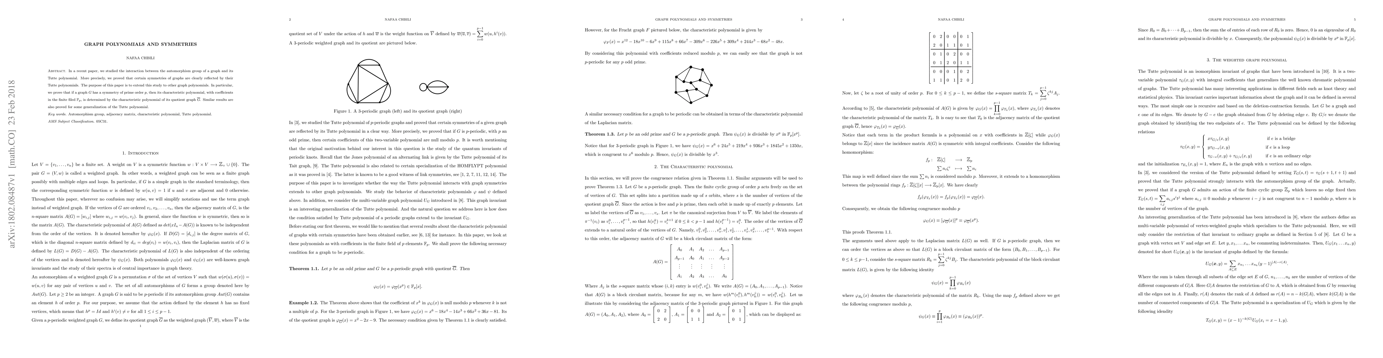 In a recent paper, we studied the interaction between the automorphism group of a graph and its Tutte polynomial. More precisely, we proved that certain symmetries of graphs are clearly reflected by their Tutte polynomials. The purpose of this paper is to extend this study to other graph polynomials. In particular, we prove that if a graph $G$ has a symmetry of prime order $p$, then its characteristic polynomial, with coefficients in the finite filed $\mathbb{F}_p$, is determined by the characteristic polynomial of its quotient graph $\overline G$. Similar results are also proved for some generalization of the Tutte polynomial.