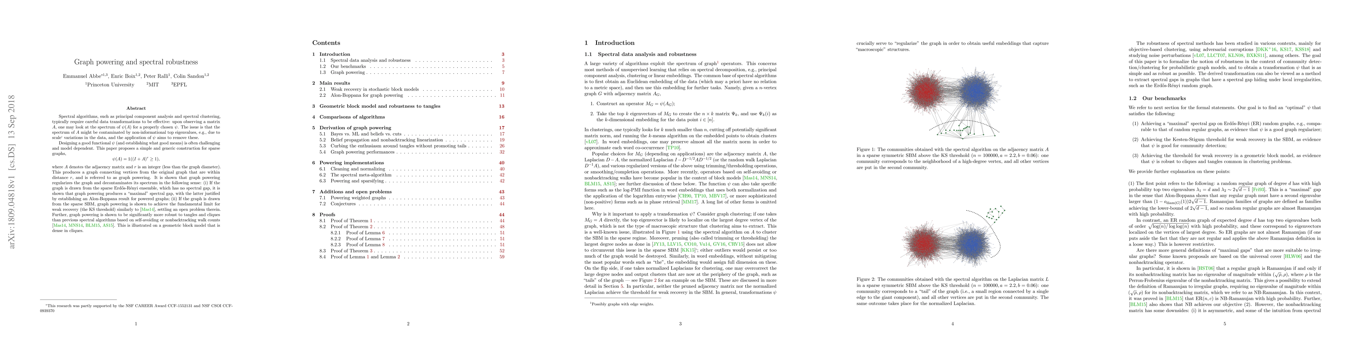 Spectral algorithms, such as principal component analysis and spectral clustering, typically require careful data transformations to be effective: upon observing a matrix $A$, one may look at the spectrum of $\psi(A)$ for a properly chosen $\psi$. The issue is that the spectrum of $A$ might be contaminated by non-informational top eigenvalues, e.g., due to scale` variations in the data, and the application of $\psi$ aims to remove these. Designing a good functional $\psi$ (and establishing what good means) is often challenging and model dependent. This paper proposes a simple and generic construction for sparse graphs, $$\psi(A) = \1((I+A)^r \ge1),$$ where $A$ denotes the adjacency matrix and $r$ is an integer (less than the graph diameter). This produces a graph connecting vertices from the original graph that are within distance $r$, and is referred to as graph powering. It is shown that graph powering regularizes the graph and decontaminates its spectrum in the following sense: (i) If the graph is drawn from the sparse Erd\H{o}s-R\'enyi ensemble, which has no spectral gap, it is shown that graph powering produces a `maximal' spectral gap, with the latter justified by establishing an Alon-Boppana result for powered graphs; (ii) If the graph is drawn from the sparse SBM, graph powering is shown to achieve the fundamental limit for weak recovery (the KS threshold) similarly to \cite{massoulie-STOC}, settling an open problem therein. Further, graph powering is shown to be significantly more robust to tangles and cliques than previous spectral algorithms based on self-avoiding or nonbacktracking walk counts \cite{massoulie-STOC,Mossel_SBM2,bordenave,colin3}. This is illustrated on a geometric block model that is dense in cliques.
