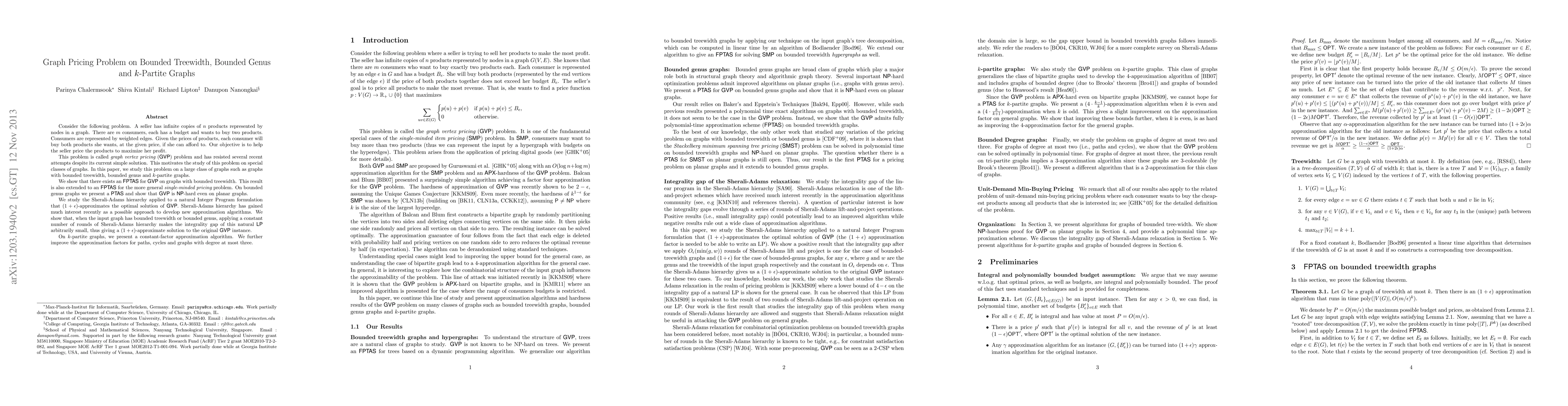 This paper explores the graph vertex pricing (GVP) problem on specific graph classes, including those with bounded treewidth, bounded genus, and k-partite structures. An FPTAS is developed for GVP on bounded treewidth graphs, and a PTAS is presented for bounded genus graphs, while a constant-factor approximation algorithm is provided for k-partite graphs. The Sherali-Adams hierarchy is applied to improve the approximation for graphs with bounded treewidth or genus.