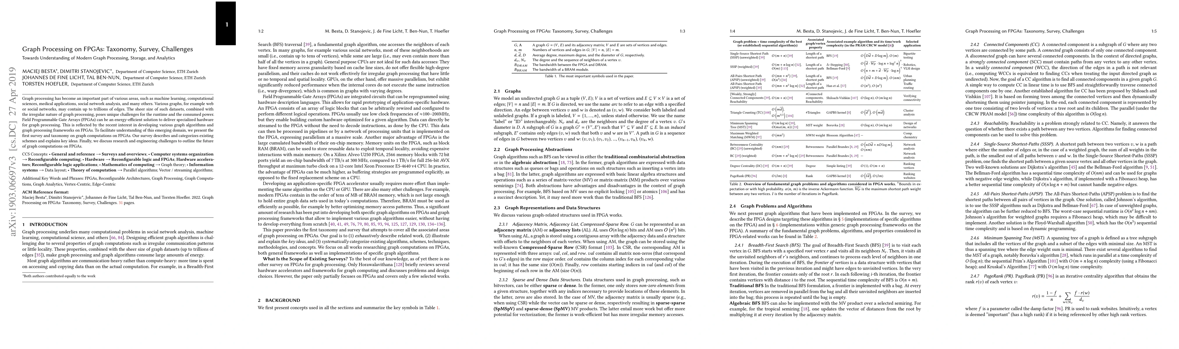 This paper surveys graph processing on FPGAs, categorizing existing schemes and highlighting key ideas. It addresses the unique challenges of scaling graph computations and discusses future research directions to leverage FPGAs' energy efficiency.
