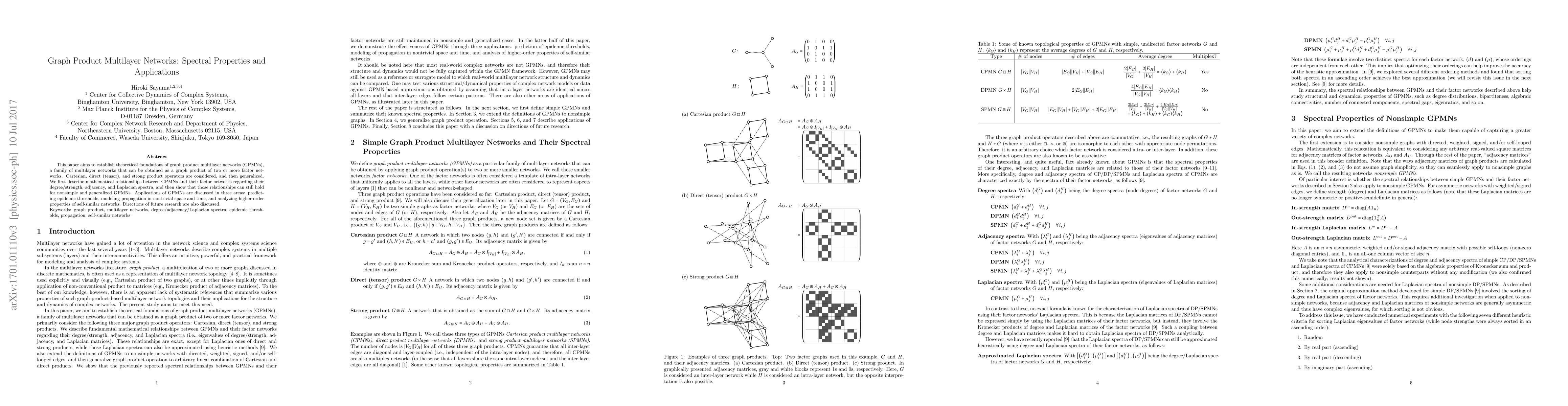 This paper aims to establish theoretical foundations of graph product multilayer networks (GPMNs), a family of multilayer networks that can be obtained as a graph product of two or more factor networks. Cartesian, direct (tensor), and strong product operators are considered, and then generalized. We first describe mathematical relationships between GPMNs and their factor networks regarding their degree/strength, adjacency, and Laplacian spectra, and then show that those relationships can still hold for nonsimple and generalized GPMNs. Applications of GPMNs are discussed in three areas: predicting epidemic thresholds, modeling propagation in nontrivial space and time, and analyzing higher-order properties of self-similar networks. Directions of future research are also discussed.