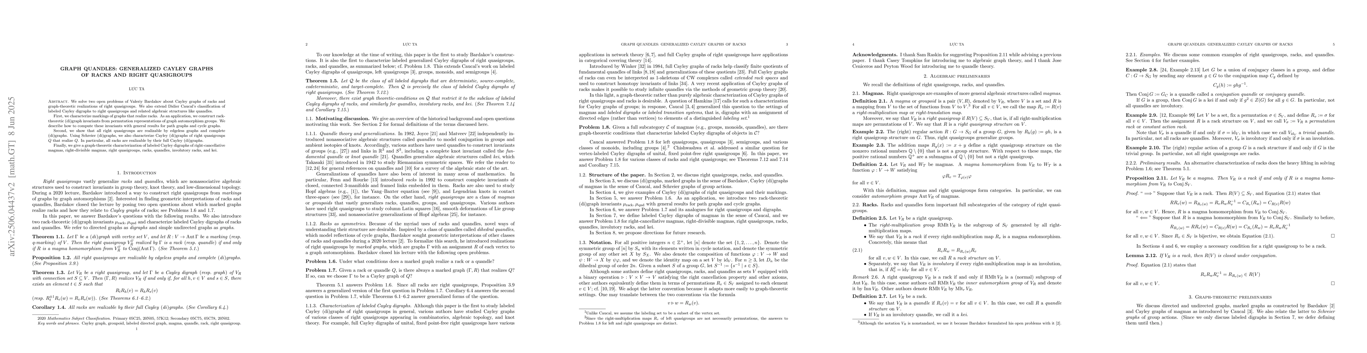 This work distinguishes itself by bridging rack theory, right quasigroups, and quandles with graph theory, offering new characterizations and invariants, and solving open problems posed by Bardakov.