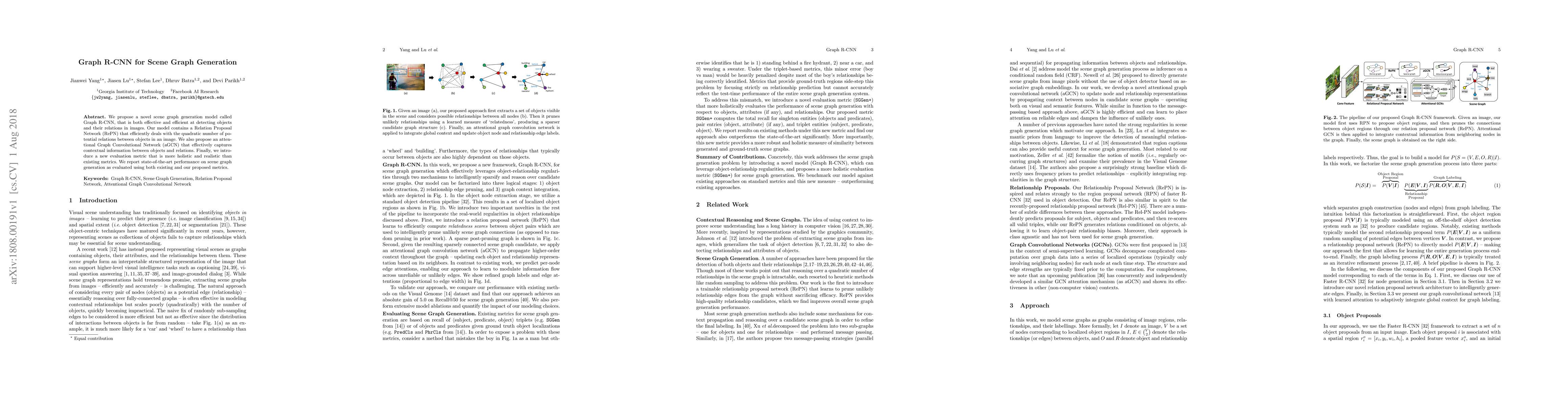The Graph R-CNN model efficiently detects objects and their relations in images using a Relation Proposal Network and an attentional Graph Convolutional Network, achieving state-of-the-art performance with a new, more realistic evaluation metric.