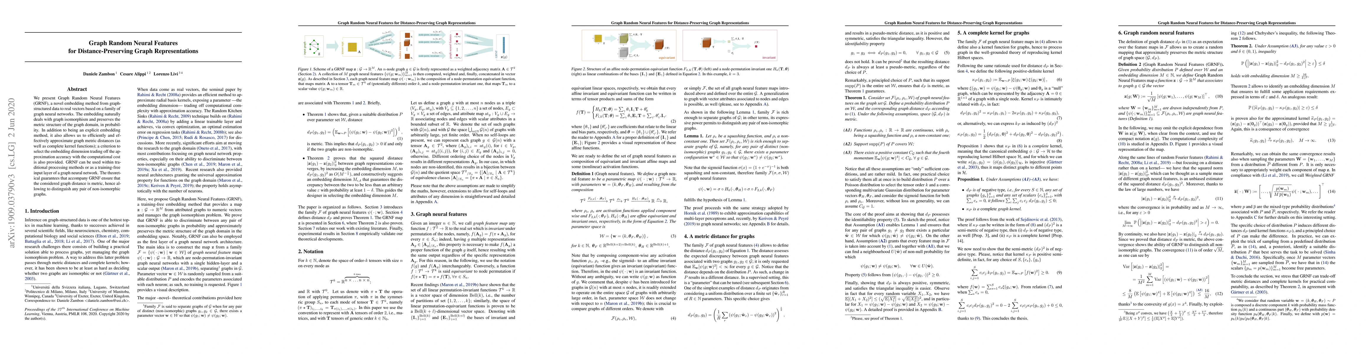 Graph Random Neural Features (GRNF) is a novel embedding method that transforms graph-structured data into real vectors while preserving metric structures and handling graph isomorphism. It efficiently approximates graph metric distances and provides a criterion for selecting embedding dimensions to balance accuracy and computational cost.