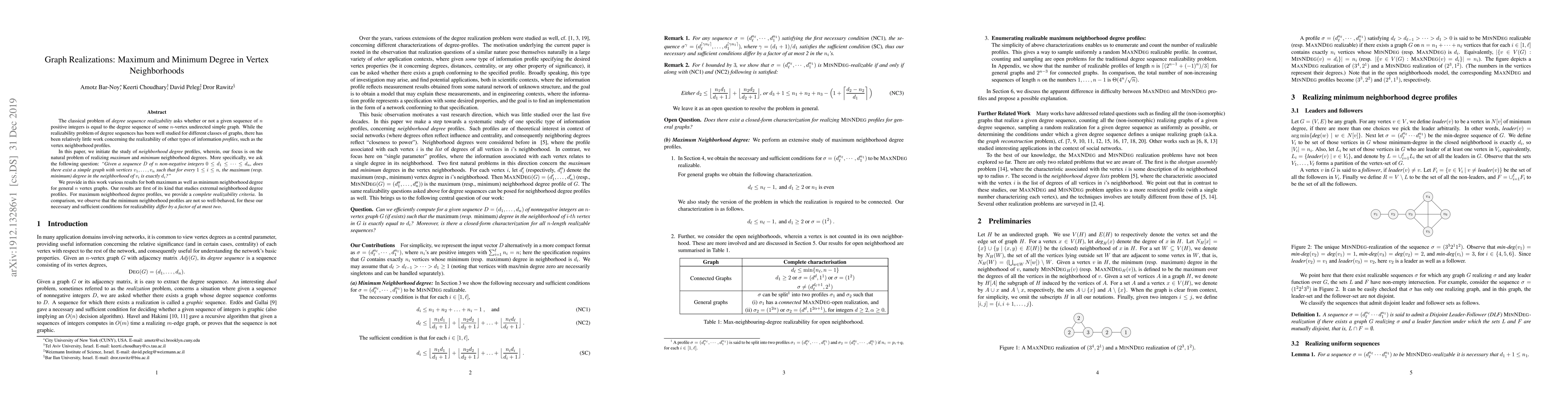 The classical problem of degree sequence realizability asks whether or not a given sequence of $n$ positive integers is equal to the degree sequence of some $n$-vertex undirected simple graph. While the realizability problem of degree sequences has been well studied for different classes of graphs, there has been relatively little work concerning the realizability of other types of information profiles, such as the vertex neighborhood profiles. In this paper, we initiate the study of neighborhood degree profiles. We focus on the natural problem of realizing maximum and minimum neighborhood degrees. More specifically, we ask the following question: Given a sequence $D$ of $n$ non-negative integers $0\leq d_1\leq \cdots \leq d_n$, does there exist a simple graph with vertices $v_1,\ldots, v_n$ such that for every $1\le i \le n$, the maximum (resp. minimum) degree in the neighborhood of $v_i$ is exactly $d_i$? We provide in this work various results for both maximum as well as minimum neighborhood degree for general $n$ vertex graphs. Our results are first of its kind that studies extremal neighborhood degree profiles. For maximum neighborhood degree profiles, we provide a {\em complete realizability criteria}. In comparison, we observe that the minimum neighborhood profiles are not so well-behaved, for these our necessary and sufficient conditions for realizability {\em differ by a factor of at most two}.