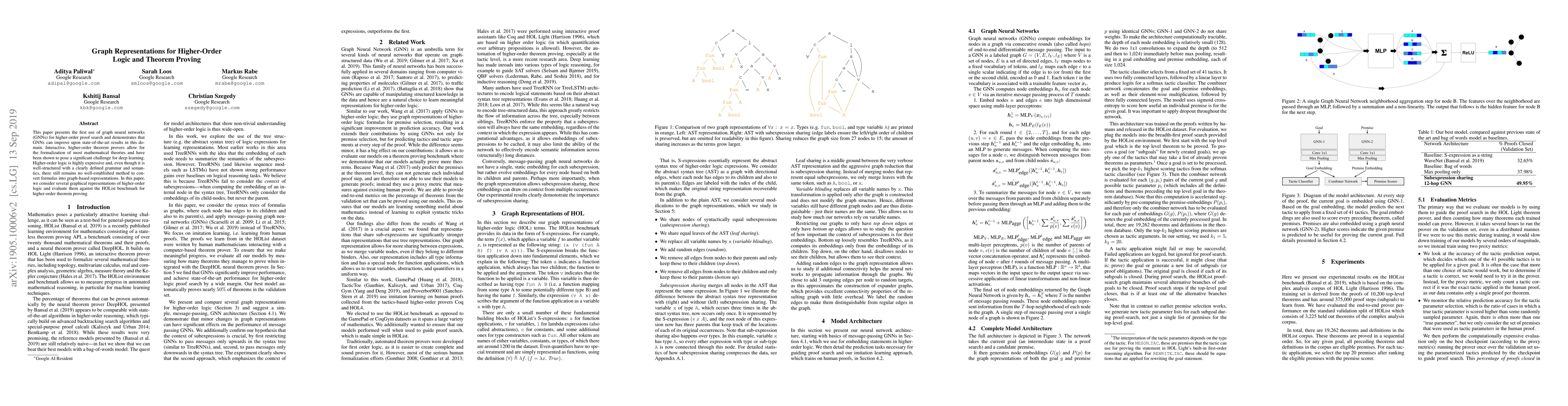 This paper introduces graph neural networks (GNNs) for higher-order logic proof search, demonstrating their effectiveness in surpassing current state-of-the-art results. The study evaluates various graphical representations of higher-order logic against the HOList benchmark, aiming to formalize mathematical theories more efficiently.