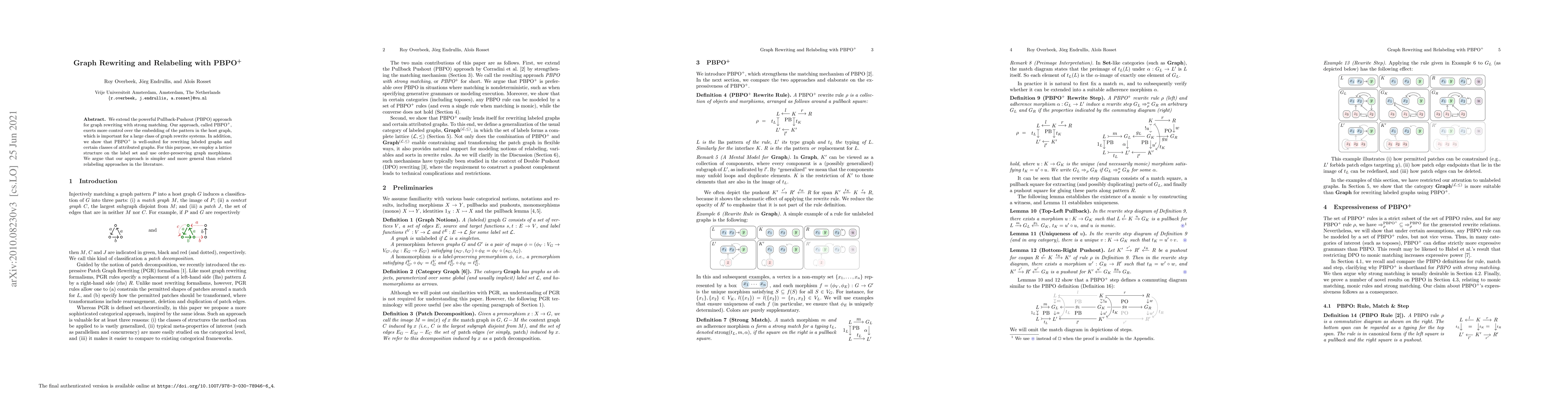This paper extends the PBPO graph rewriting approach with strong matching to improve control over pattern embedding in host graphs. The \pbpostrong method is also shown to effectively handle labeled and attributed graphs using lattice structures and order-preserving morphisms, offering a simpler and more general solution compared to existing relabeling techniques.