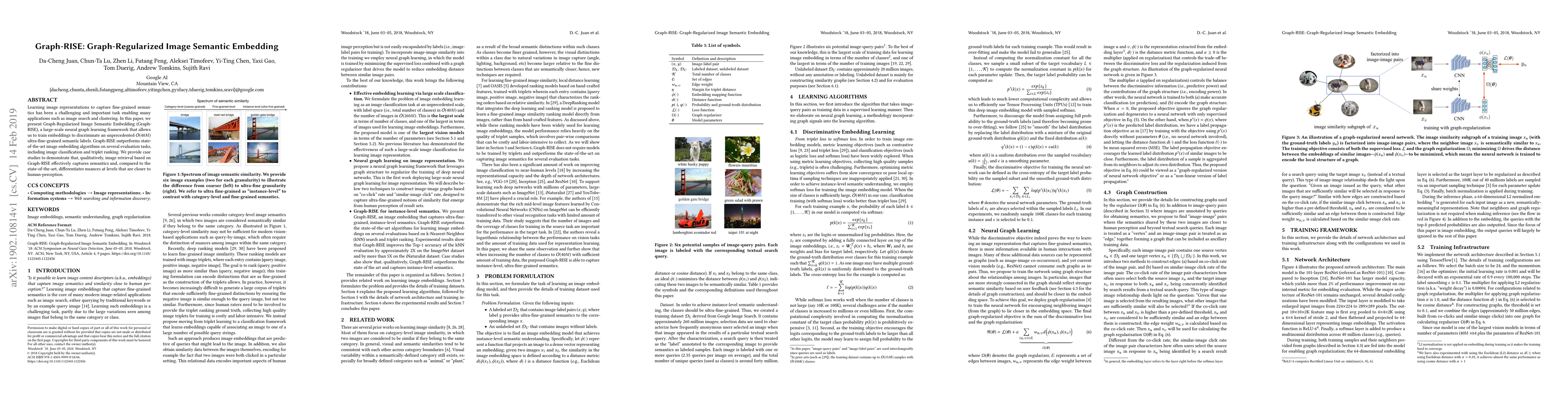 Learning image representations to capture fine-grained semantics has been a challenging and important task enabling many applications such as image search and clustering. In this paper, we present Graph-Regularized Image Semantic Embedding (Graph-RISE), a large-scale neural graph learning framework that allows us to train embeddings to discriminate an unprecedented O(40M) ultra-fine-grained semantic labels. Graph-RISE outperforms state-of-the-art image embedding algorithms on several evaluation tasks, including image classification and triplet ranking. We provide case studies to demonstrate that, qualitatively, image retrieval based on Graph-RISE effectively captures semantics and, compared to the state-of-the-art, differentiates nuances at levels that are closer to human-perception.