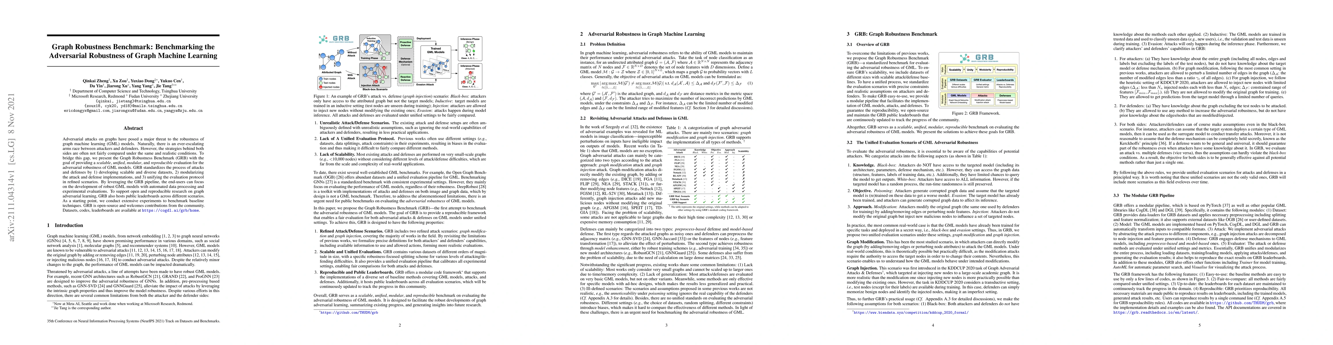 The Graph Robustness Benchmark (GRB) aims to standardize adversarial attacks and defenses for graph machine learning models, offering scalable, modular, and reproducible evaluations. It facilitates open research by providing datasets, code, and leaderboards, and supports the development of robust GML models through automated evaluations.