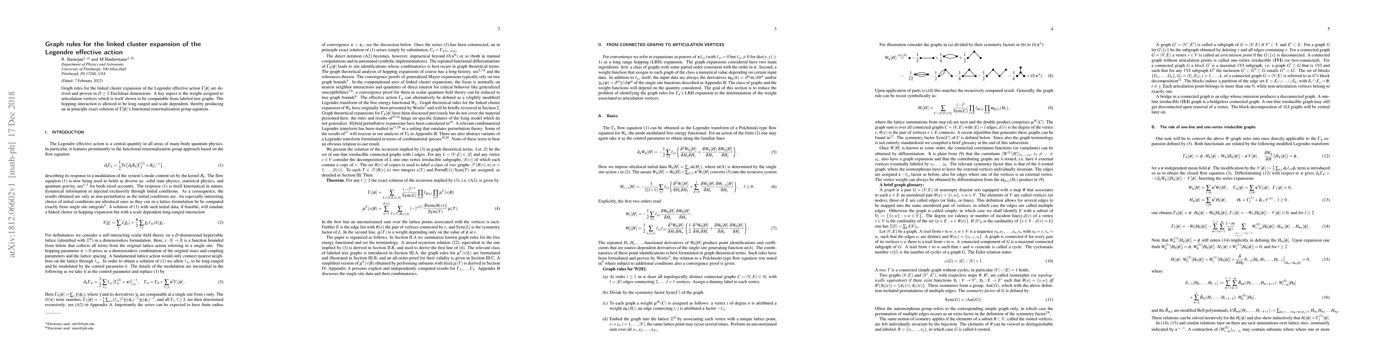 Graph rules for the linked cluster expansion of the Legendre effective action $\Gamma[\phi]$ are derived and proven in $D\geq 2$ Euclidean dimensions. A key aspect is the weight assigned to articulation vertices which is itself shown to be computable from labeled tree graphs. The hopping interaction is allowed to be long ranged and scale dependent, thereby producing an in principle exact solution of $\Gamma[\phi]$'s functional renormalization group equation.
