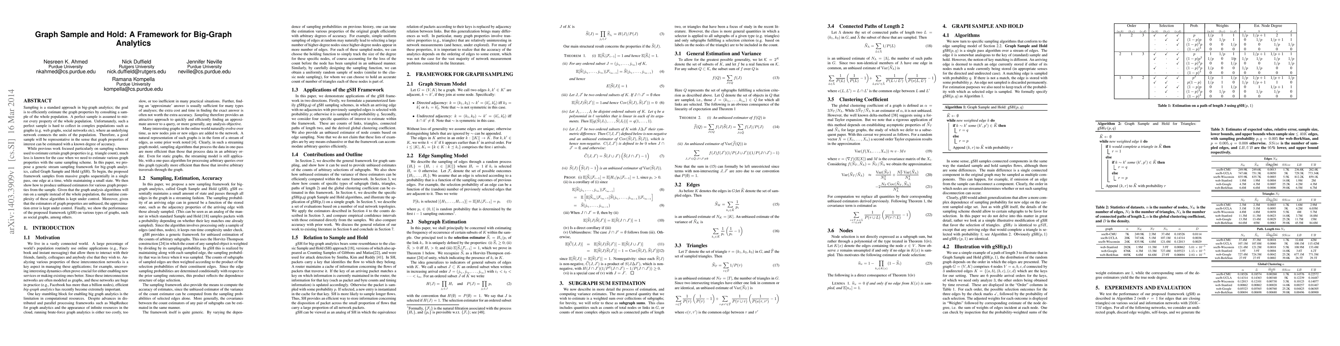 This paper presents a framework called Graph Sample and Hold (gSH) for efficient big-graph analytics through sequential sampling of edges. The proposed method aims to estimate various graph properties accurately while maintaining a small state and controlling both runtime complexity and approximation error.